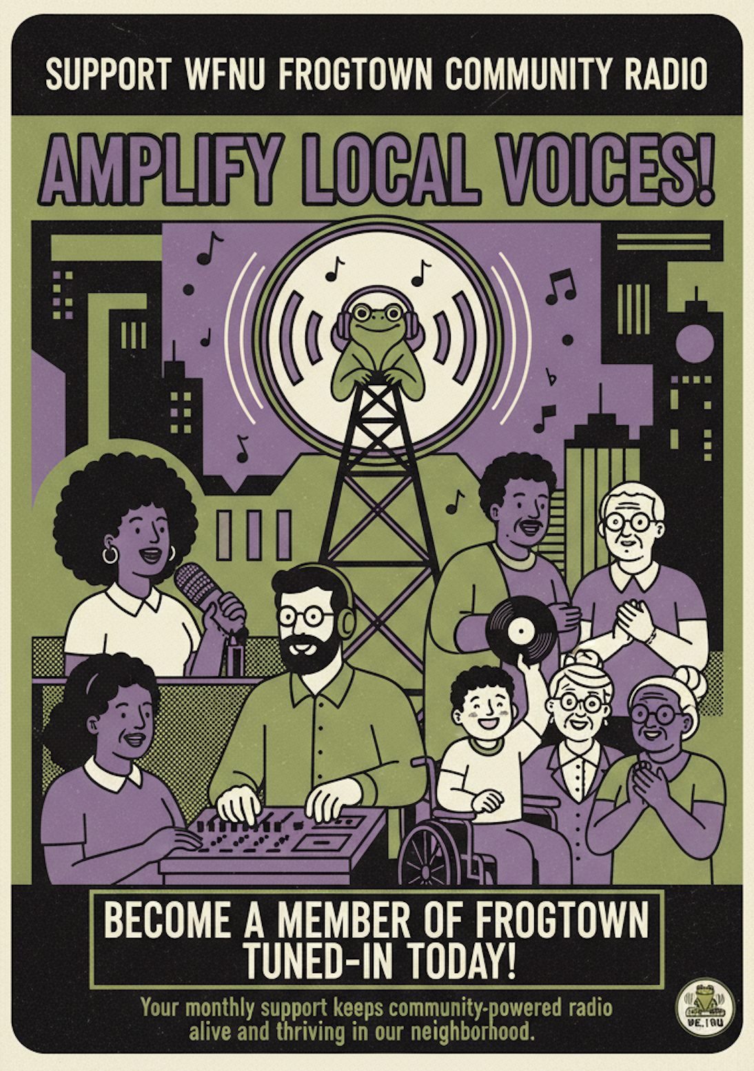 Frogtown Friend ($10/month) - Jump into the WFNU family with our entry-level membership! For the price of a couple fancy coffees each month, you'll get our eye-catching bumper sticker to show your radio pride, plus a membership card that scores you 10% off at Marc Heu Patisserie. Small contribution, big impact!